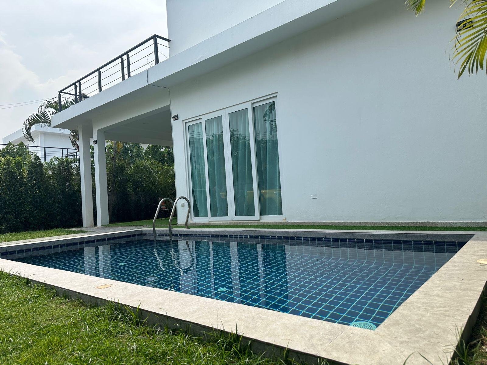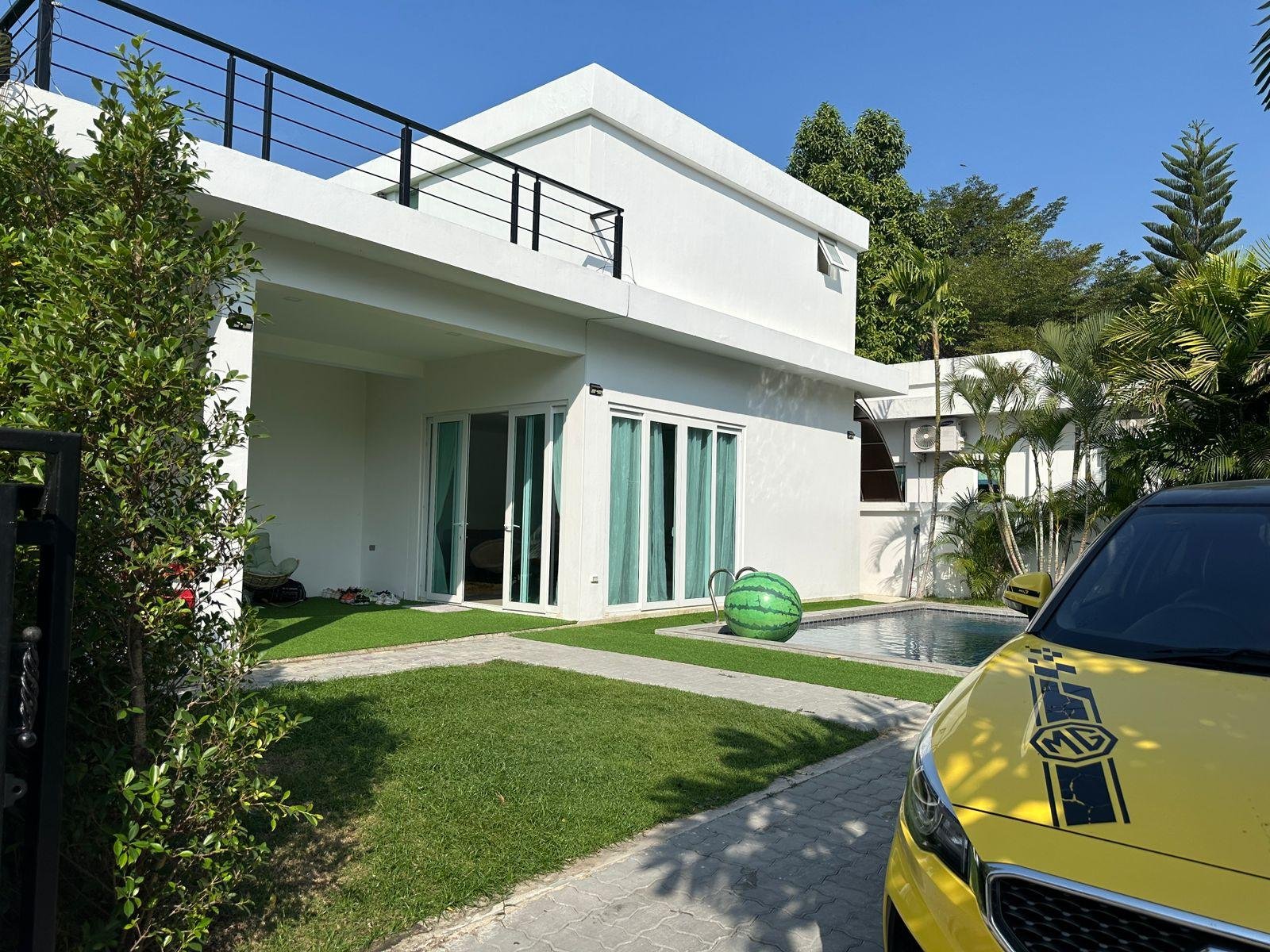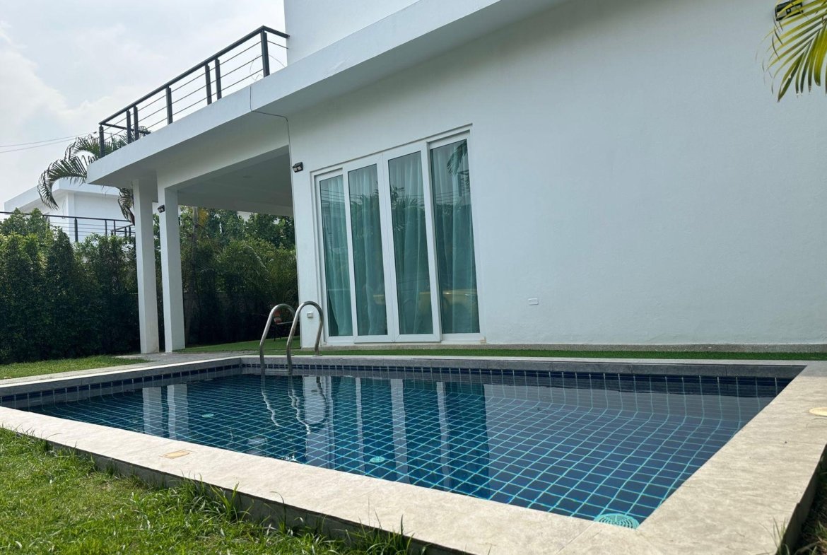 Offered fully furnished, this is a move-in ready pool villa for sale near Pattaya, positioned in a quiet residential zone close to beaches, restaurants, and main road access.