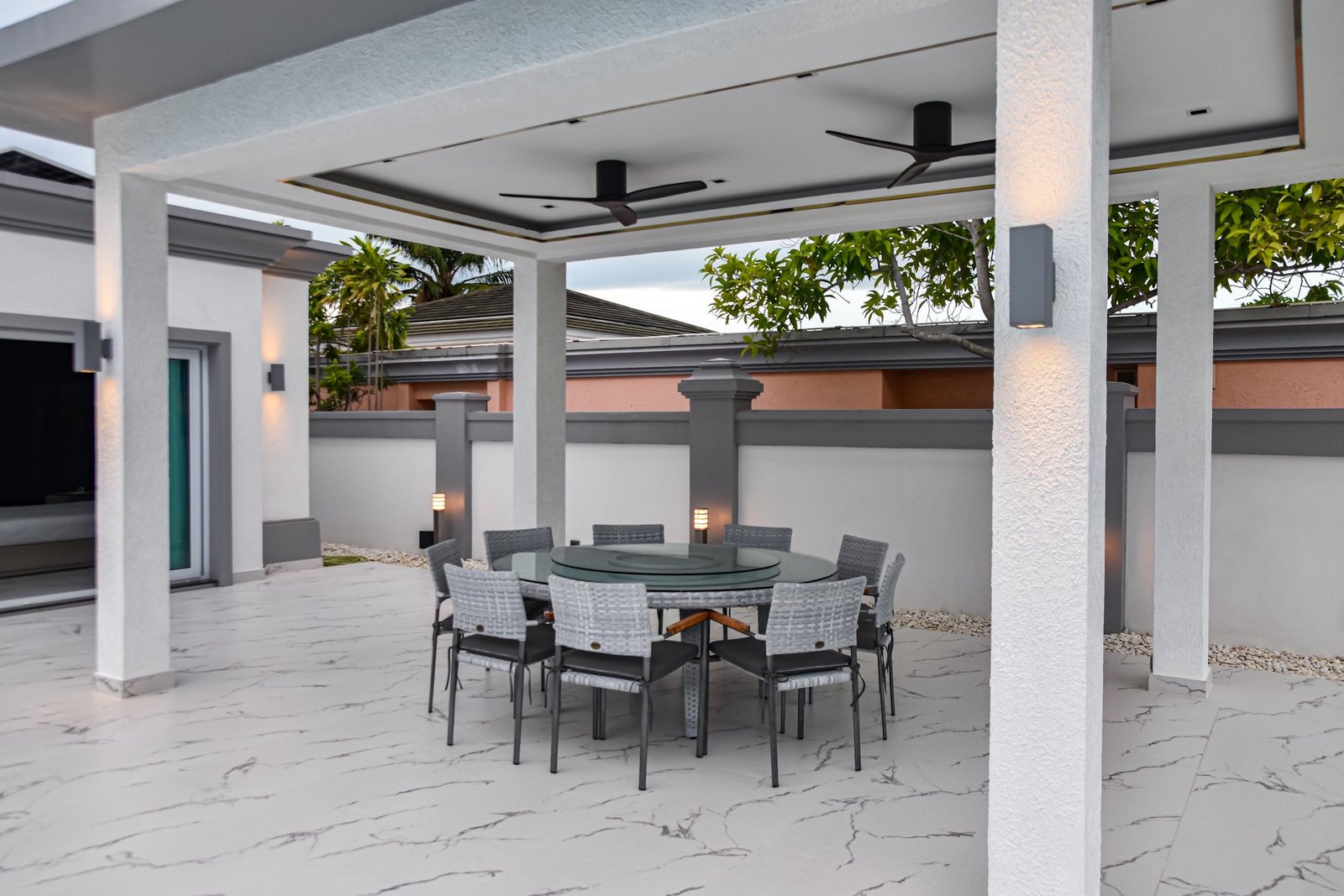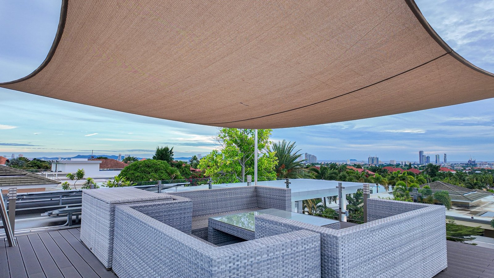 Rooftop seating area with Pattaya city view